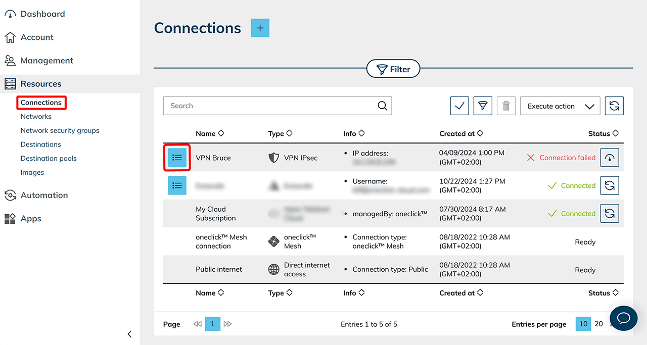 - In oneclick™ Administration, open the Resources tab and click Connections.