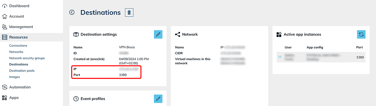 - Check whether oneclick™ has VPN access to the desired local destination networks.