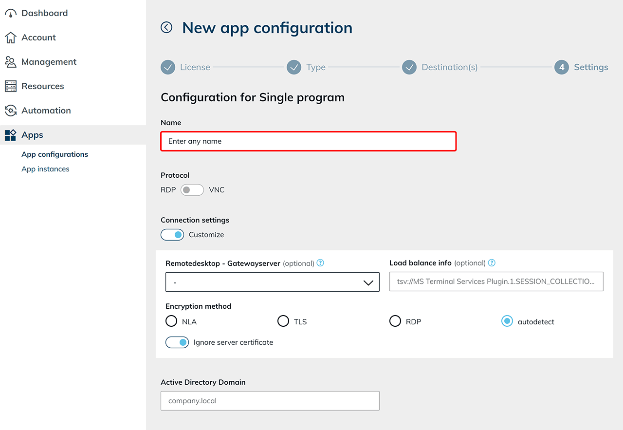 If you have already connected your server in oneclick™ and want to publish it as a Remote App or single application, make sure to configure all relevant settings in advance for optimal delivery.