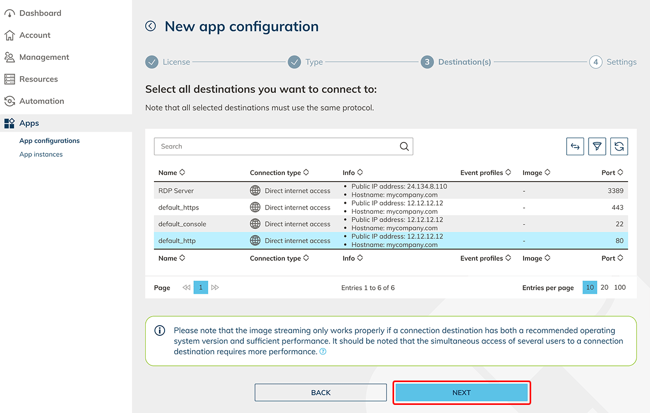 - In the next step you can choose the appropriate configuration type (internal website/app) for accessing your resources.