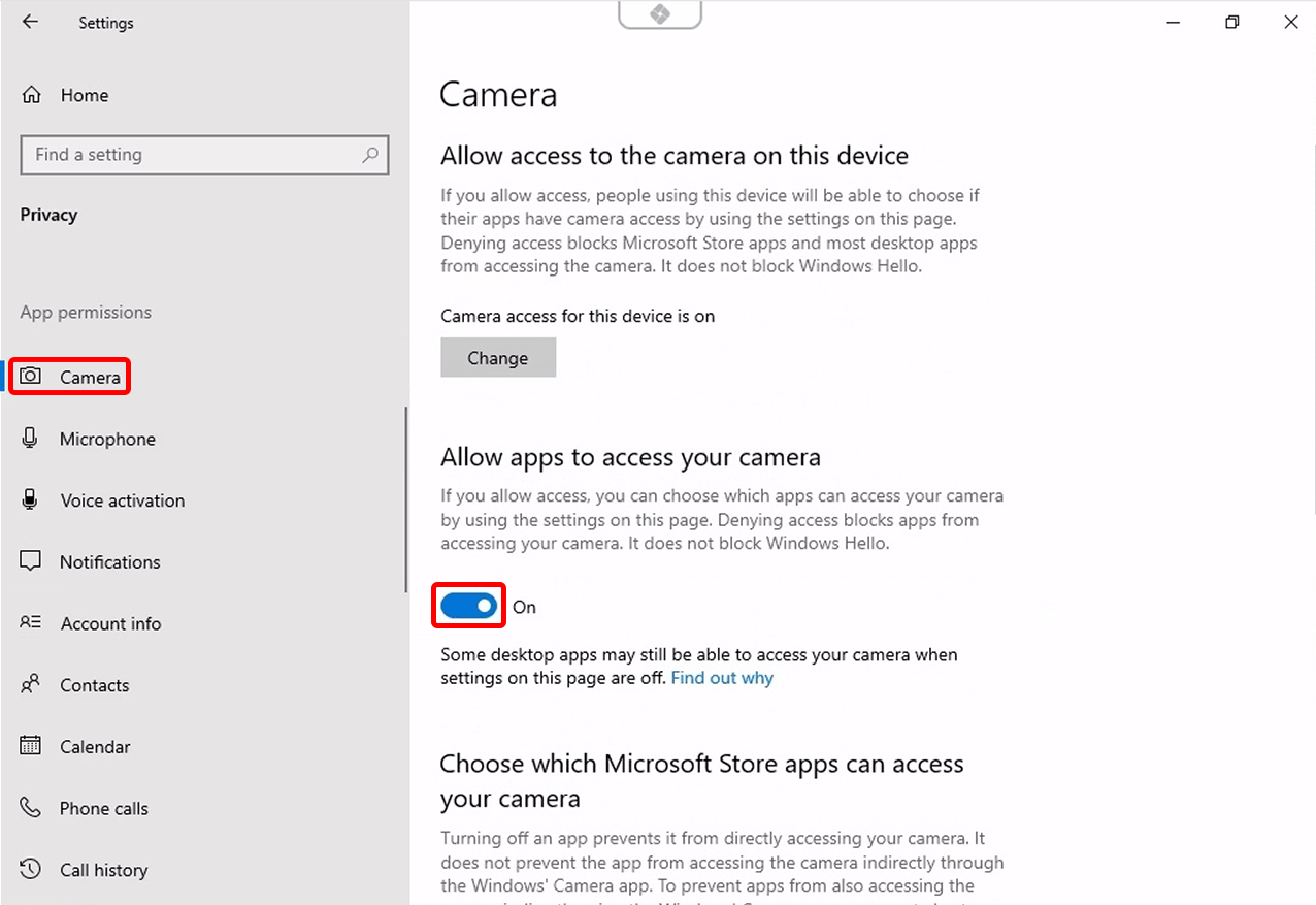 To make the settings for your webcam, go to Start > Settings > Privacy > Camera: