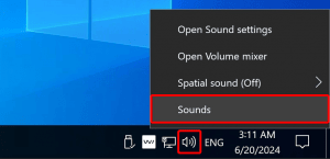 - Open the Windows server you are accessing via oneclick™ and right-click on the Sound icon in the bottom right-hand corner of the taskbar. Then click on Sounds.