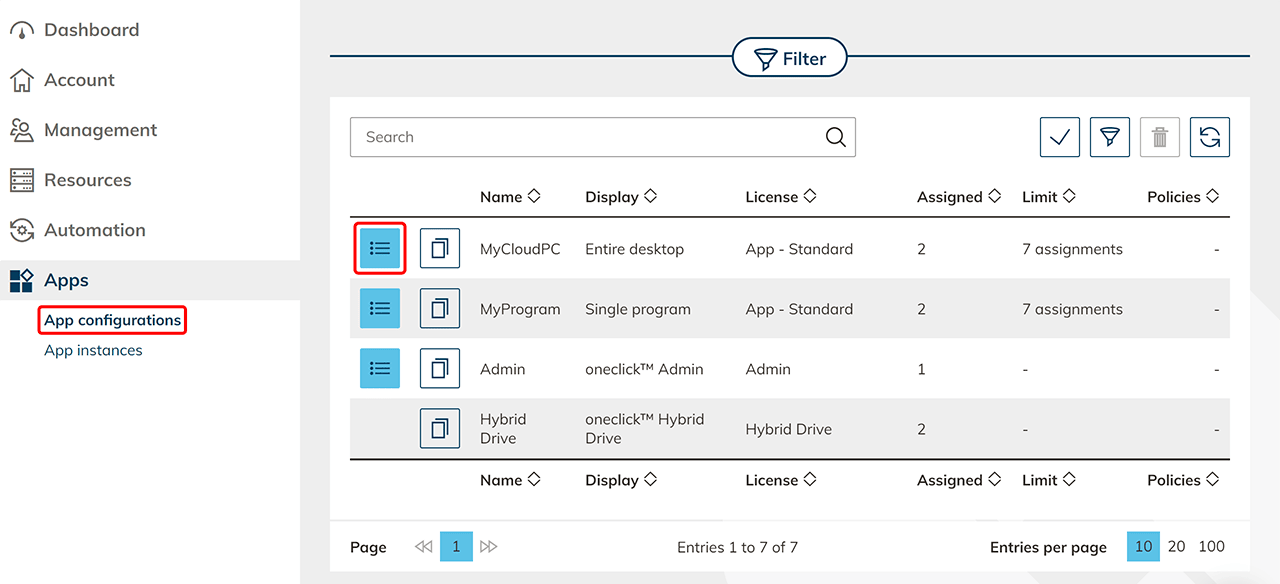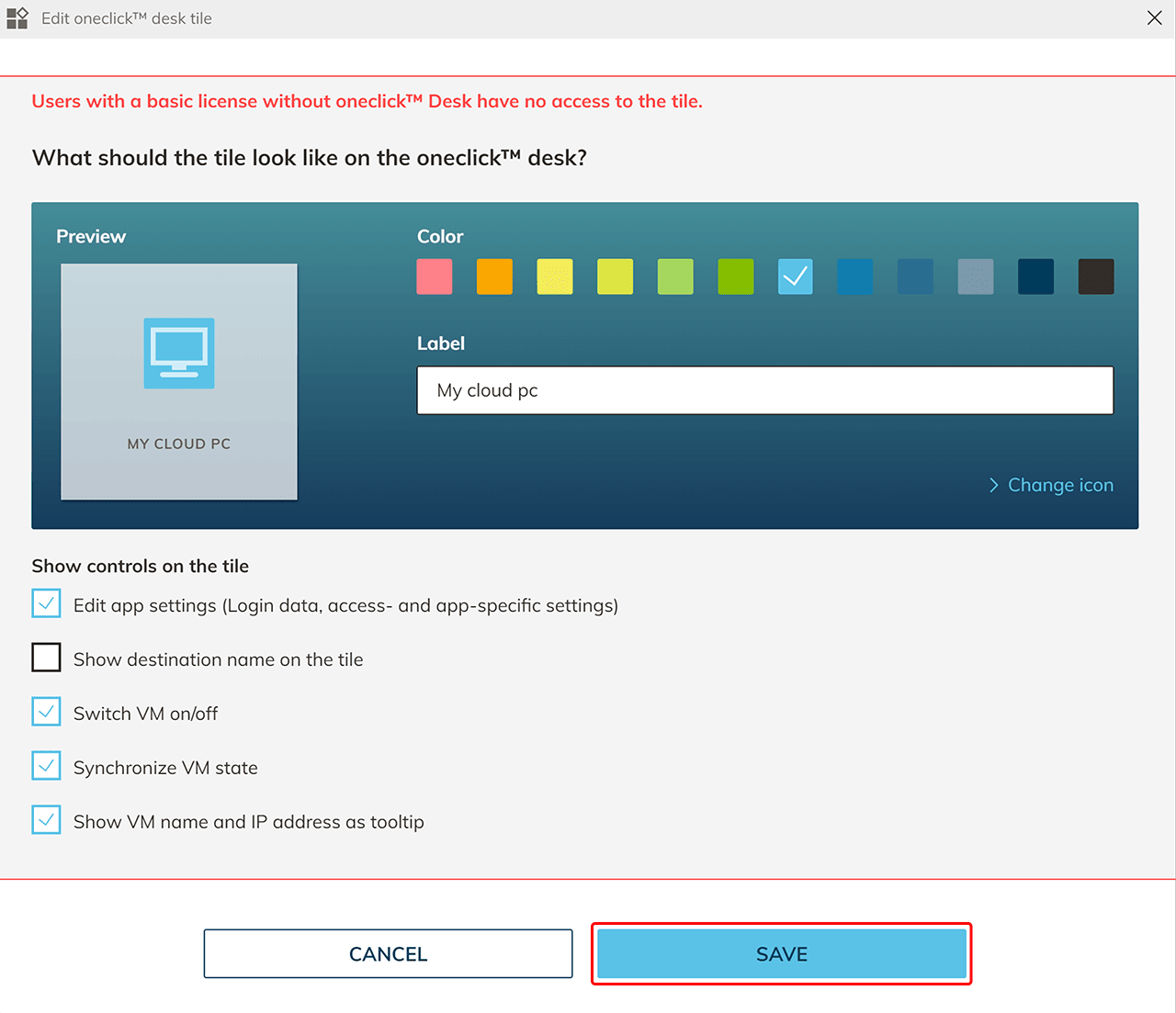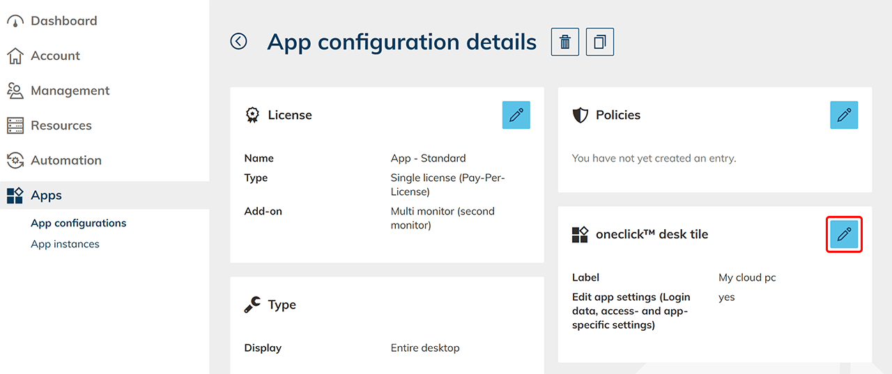 - In the tile "oneclick™ desk tile" click on the Pencil icon.