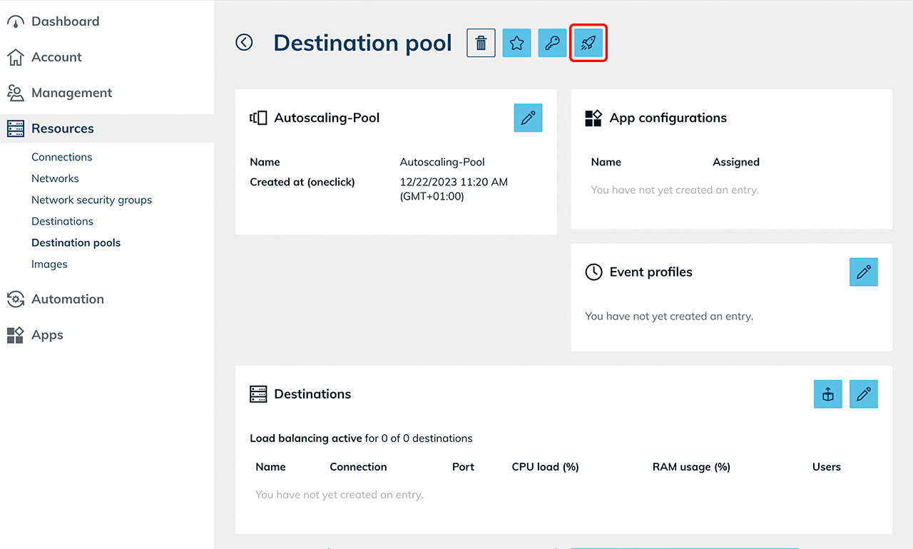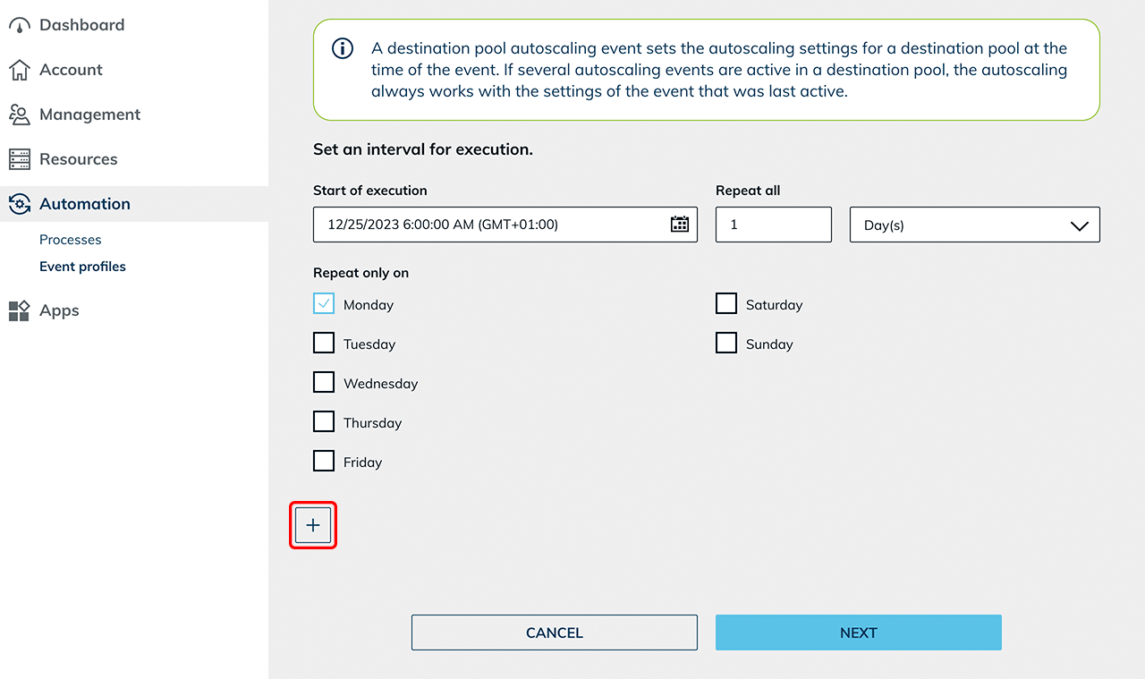 - After finishing all the preparations you can now start autoscaling: Select the autoscaling event profile in your pool.