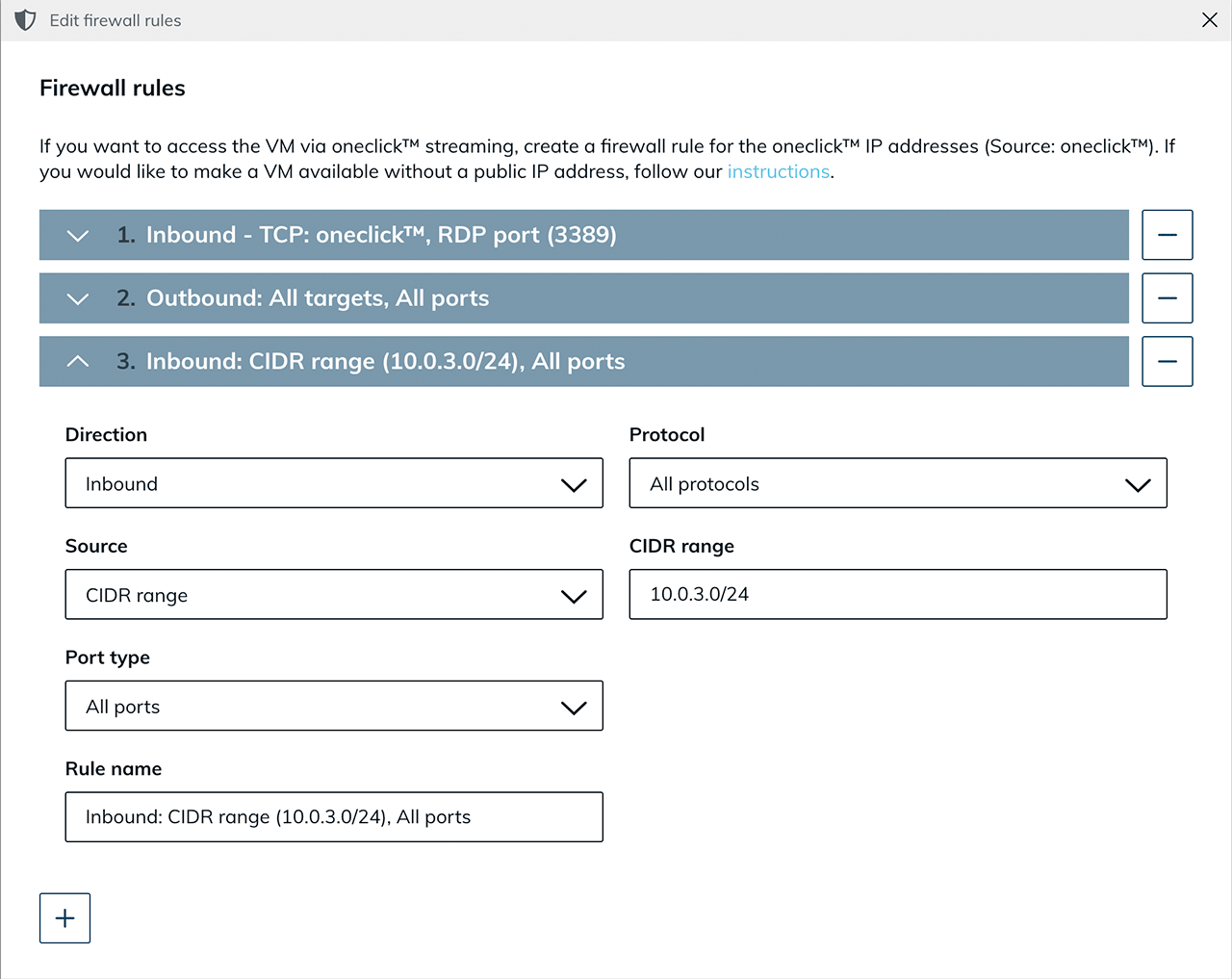 Create a VM directly via oneclick™. Proceed as follows: