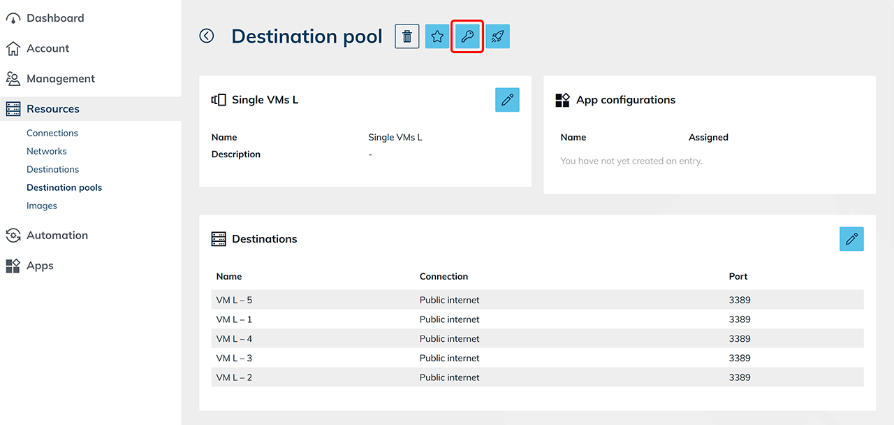 - In the Resources tab, go to Destination pools and click the List icon to get to the details page.