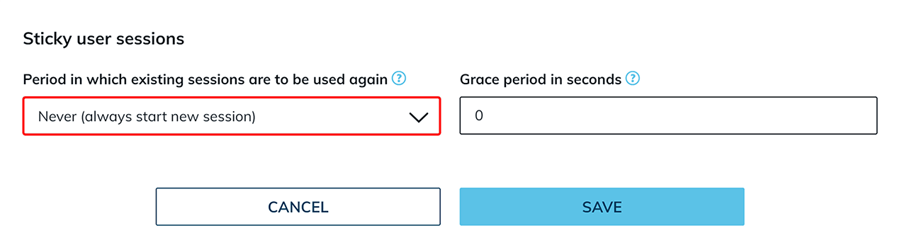 By default, the user always receives a new session. However, in oneclick™ you have the option of retaining the session for a specified period of time. If you want to enable parallel sessions from one user on one server, you must activate sticky sessions. To do this, open the drop-down menu under the item "Period in which existing sessions are to be used again" to change it. The time period specified here must then also be set exactly in Windows. (See "Configure Sticky Sessions in Windows" below).