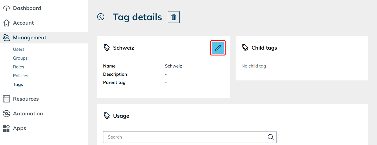 - Click the Pencil icon to edit the tag.