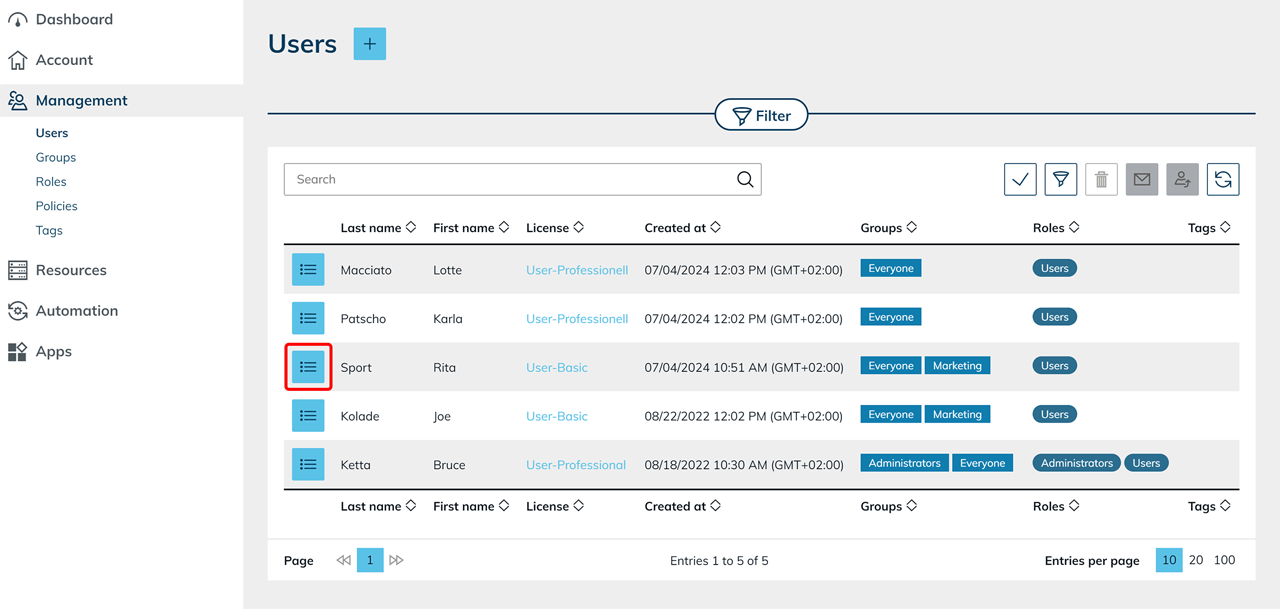- Open Management in the administrator area.