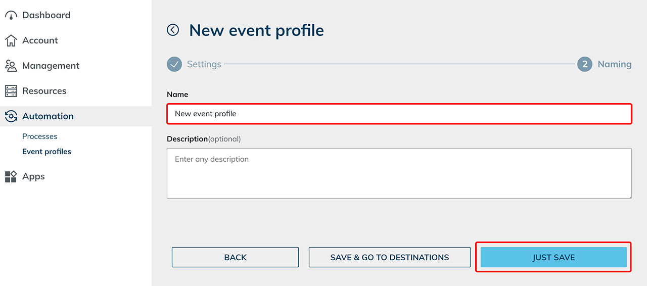 - In the Automation tab click Event profiles.