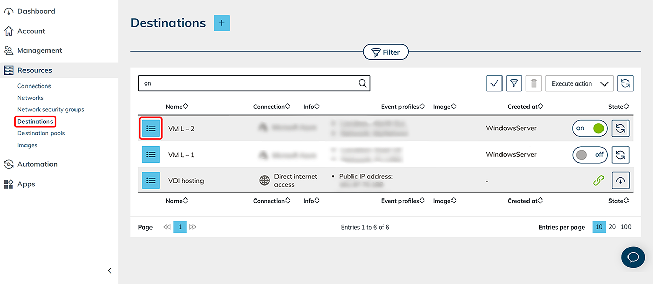 - In the Resources tab, go to Destinations.