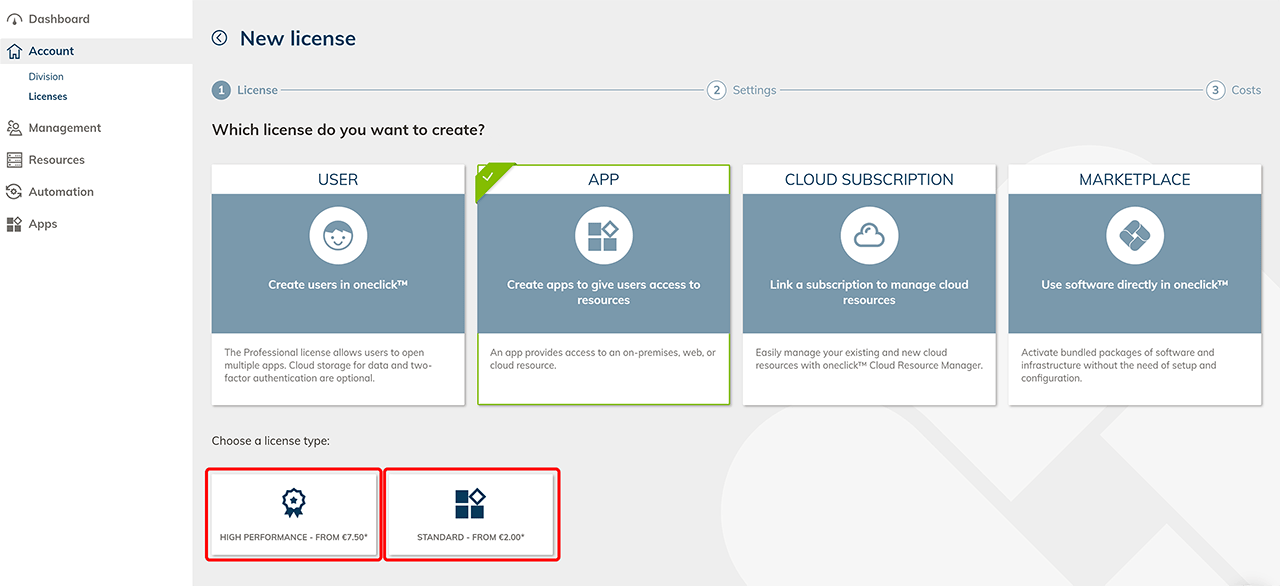 You need app licenses to assign apps to your users. An app allows a user to access a resource connected to oneclick™ (on premises, web or cloud).