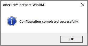 For oneclick™ to be able to execute processes on your destination, Windows Remote Management (WinRM) must first be activated on the corresponding server. In addition, port 5986 in the Windows firewall (and all other firewalls used) should be enabled for the required IP addresses.