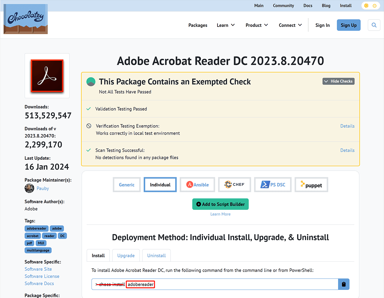 choco install adobereader). However, for input in oneclick, only the package name, in this exampleadobereader, should be entered, withoutchoco install.