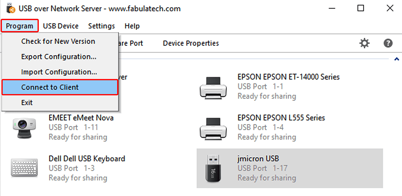 - To complete the setup it is necessary to additionally install FabulaTech USB over Network SERVER on your local end device (to which the USB devices are connected). Download required components from the software manufacturer's site. Make sure you download the appropriate version for your end device.