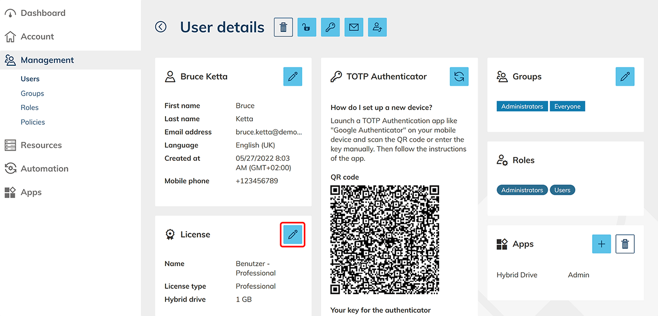 - Click on the List icon in the row of the user you want to edit. You get to the detail page.