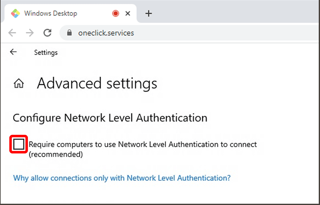 2. Disable NLA on the Windows server
