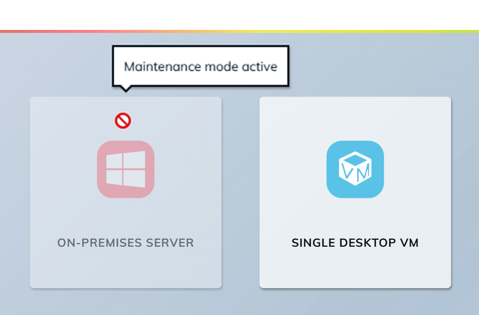 In maintenance mode, you can temporarily block user access without losing the visibility of the app. While the maintenance window is active, the app instance remains visible but cannot be started.