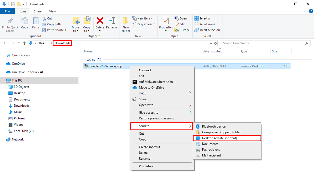 Create shortcuts to the oneclick™ access window and the RDP file to start your remote connection faster. Optionally, you can assign your shortcut a custom oneclick™ icon.