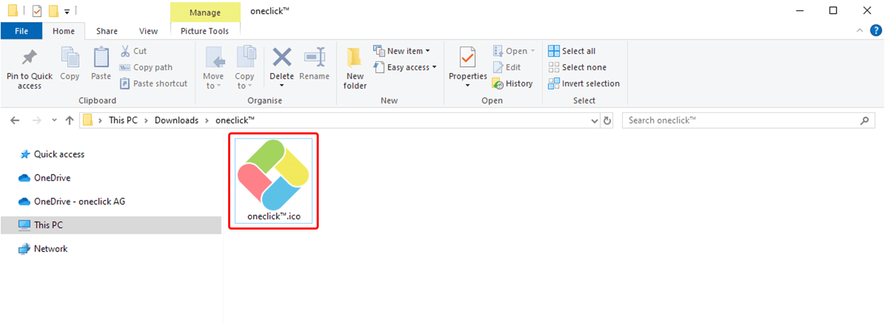 - Move the extracted file oneclick™.ico to a folder of your choice (e.g.,