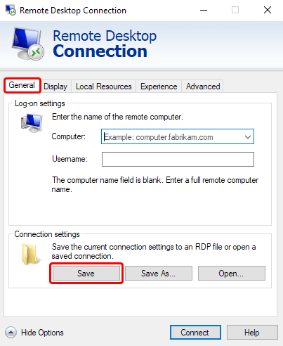 Otherwise, the session will start in a small window only. - Then switch to the “General” tab and click Save to permanently apply the changes.