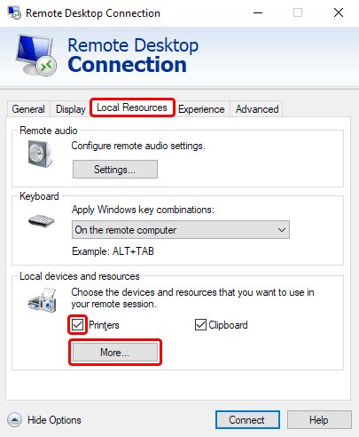- Go to the “Local Resources” tab and enable the “Clipboard” option.