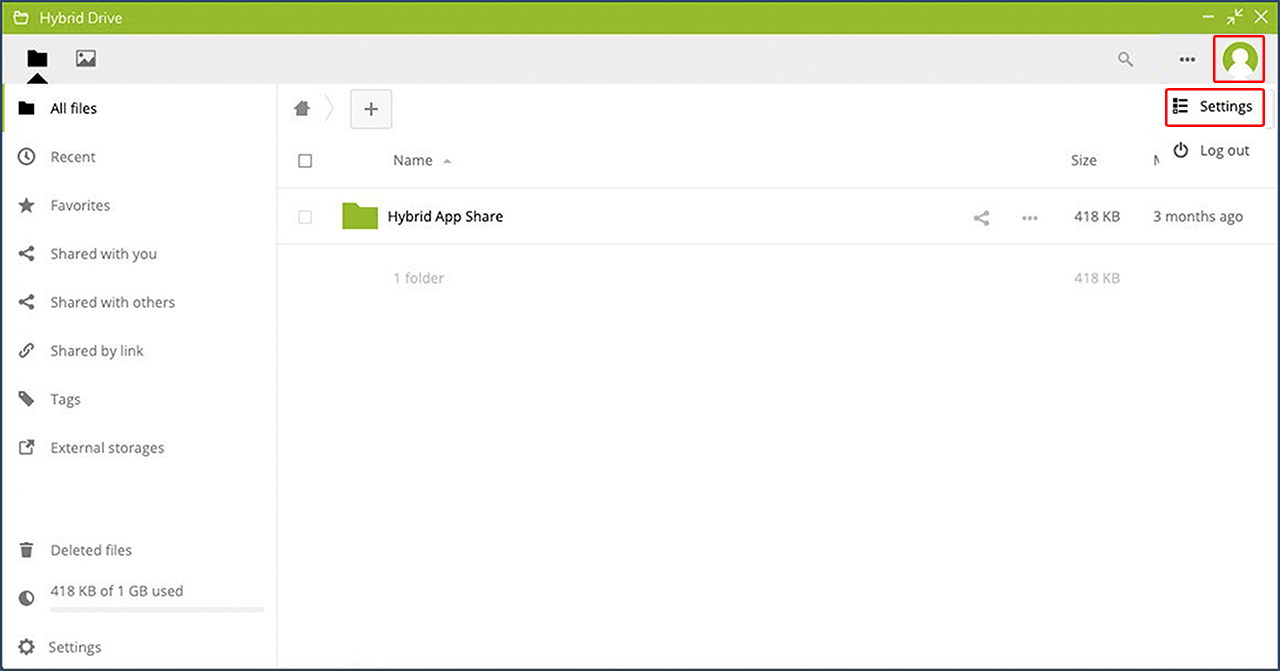 - Go to Settings in your Hybrid Drive.