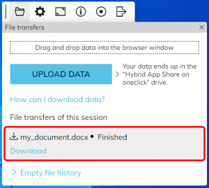 - The oneclick™ menu opens and shows that you have downloaded the file. You can download the file again at any time by clicking on Download.