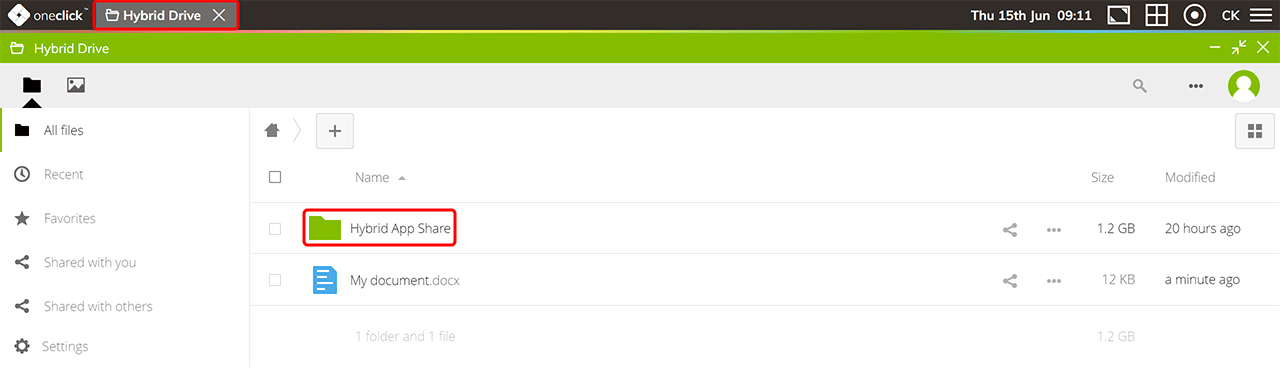 - You will then find the file in the Hybrid Drive in the "Hybrid App Share" folder.