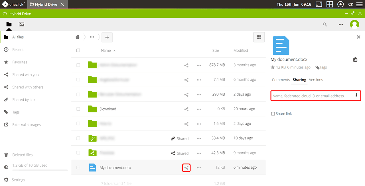 - If you want to share a file from your virtual desktop, move it to the „Hybrid App Share on oneclick“ drive within your Windows desktop or program.