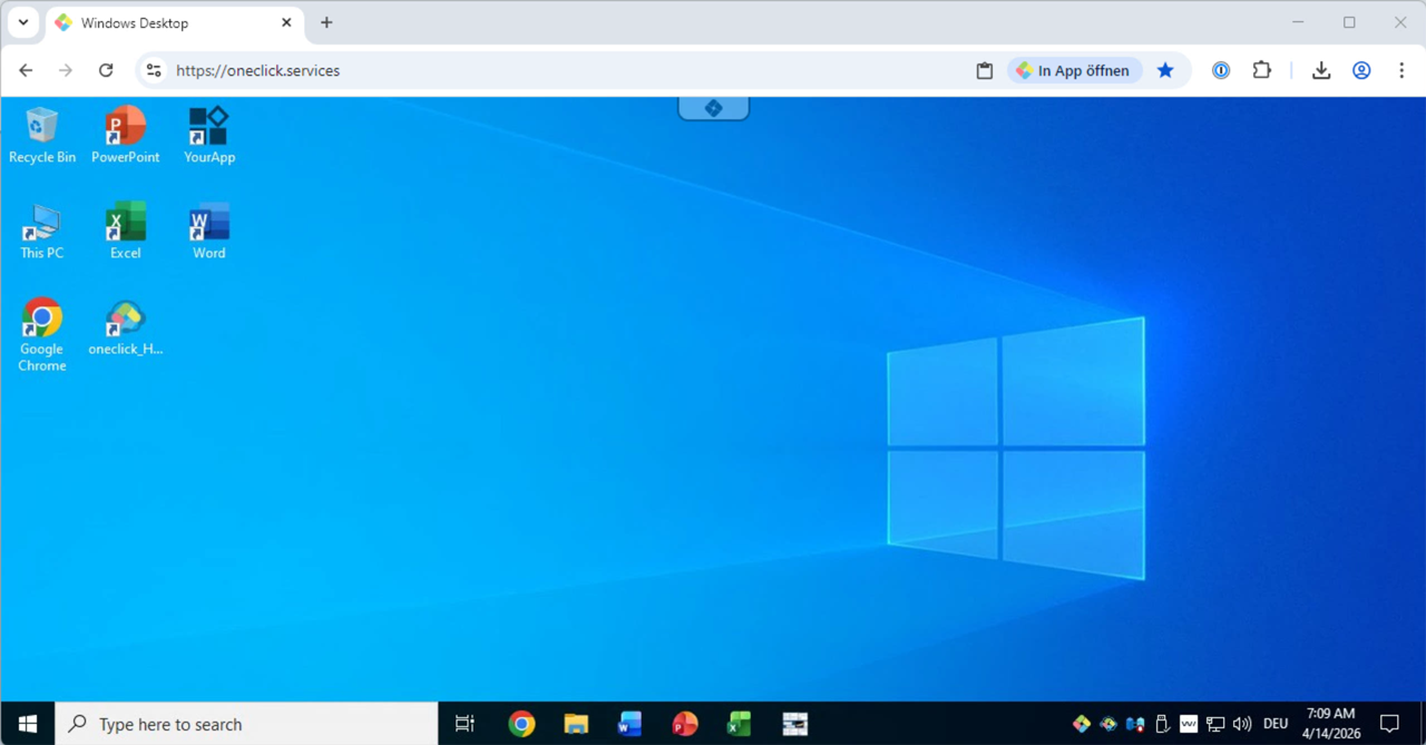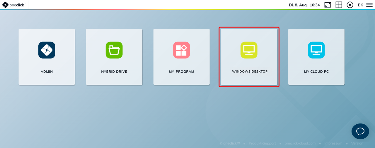 You will first land on the oneclick™ Desk. From here, you can access the required applications or the Windows desktop.