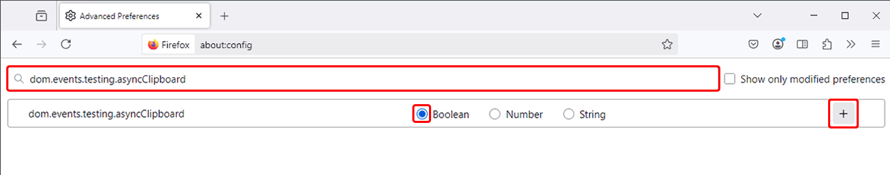 Select the type Boolean (i.e., a "true/false" value) and click the Plus symbol to add the entry.