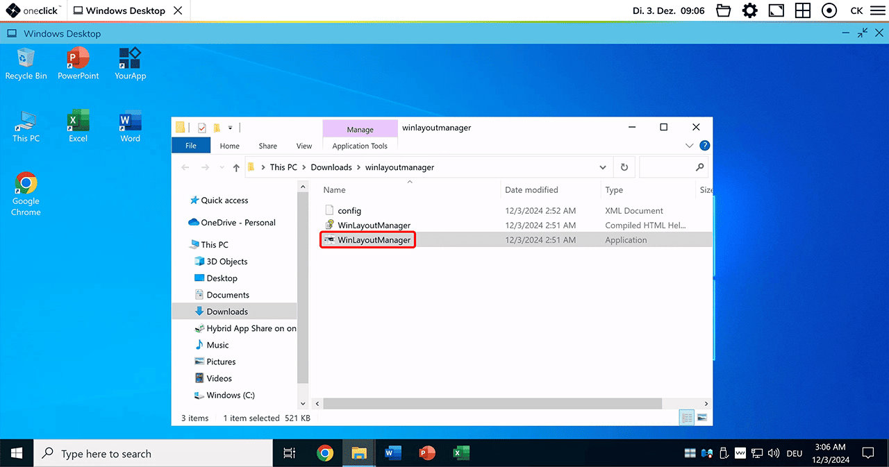 - Open the directory where you extracted the files, and then double-click the file WinLayoutManager to start the program.