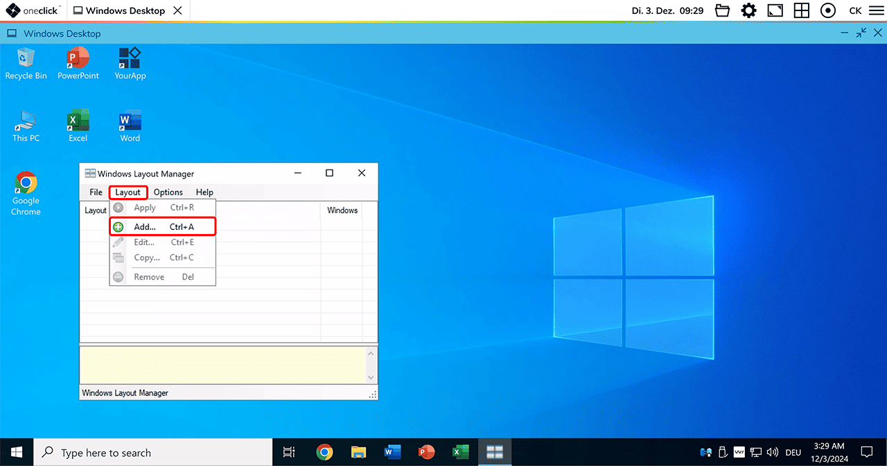 - Create your personal Layout by clicking on Layout and then selecting Add.