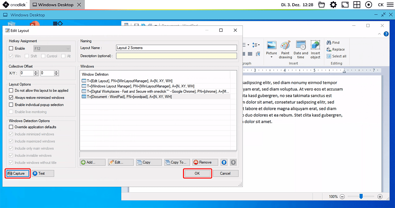 - Click on Capture, and once your layout is saved, you can access and execute it at any time.