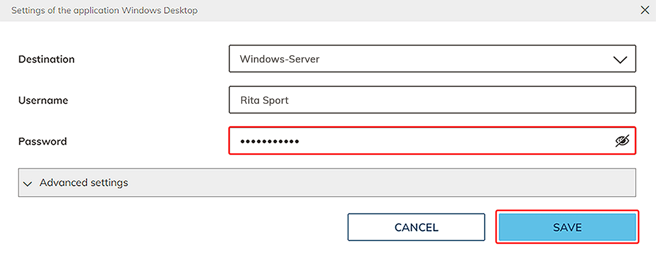 If your login data is not stored and you are entering your data again each time you log in, the following window will appear first under point 2. - Enter your Username and your new Windows Password. Optionally tick “Save login data” and click Validate.