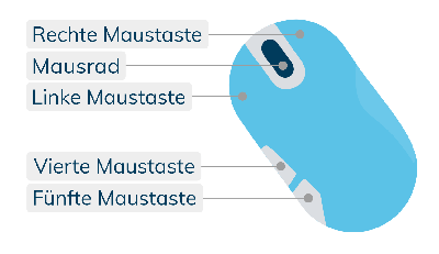 In addition, oneclick™ supports the use of the fourth and fifth mouse buttons (usually on the side of the device). In Windows, these are usually assigned to the “Page forward” and “Page backward” functions and can be used in the browser, for example.
